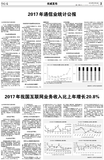 2017年我国互联网业务收入比上年增长20.8%