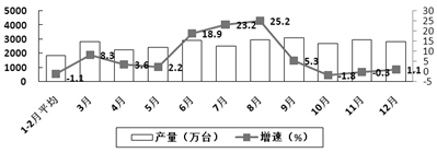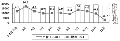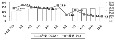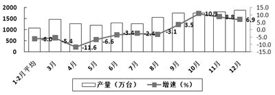 生产保持较快增长。2017年,规模以上电子信息制造业增加值比上年增长13.8%,增速比2016年加快3.8个百分点;快于全部规模以上工业增速7.2个百分点,占规模以上工业增加值比重为7.7%。其中,12月份增速为12.4%,比11月份回落2.6个百分点。