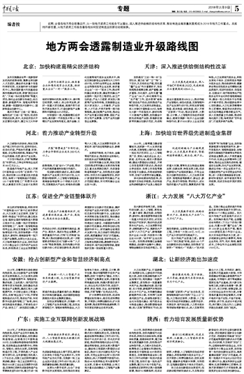 地方两会透露制造业升级路线图