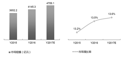 1.市场规模。2017年,中国工业在宏观经济与产业转型的双重影响下,结构性调整取得进展,工业信息化投资进一步扩大,工业互联网市场保持较高的增长速度。2017年中国工业互联网市场规模达到4709.1亿元,同比增长13.6%,增速领先全球工业互联网市场。