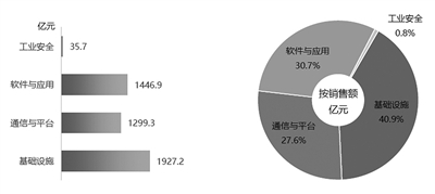 2.市场结构。2017年,在工业互联网细分领域,数据应用领域保持着较快的增长速度,主要受益于云计算和工业大数据应用范围扩大、智能制造流程自动化进一步深入带来的信息化需求。虽然近年来工业领域的安全事件频频发生,但企业在工业安全领域的投入仍然有较大不足,我国工业安全市场的规模和增长速度与工业互联网整体发展态势不符,值得引起工业企业的高度关注。