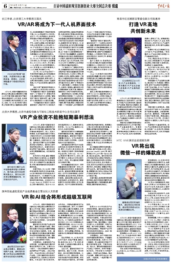 第06版:首届中国虚拟现实创新创业大赛全国总决赛 报道