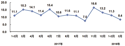 3月末,全行业应收账款同比增长14.0%,高于同期主营业务收入增速6.2个百分点。产成品存货同比增长13.6%,增速同比加快4.4个百分点,高于同期主营业务收入增速5.8个百分点。