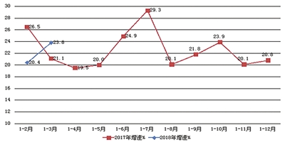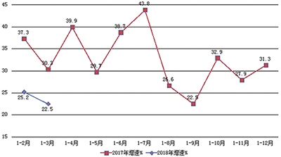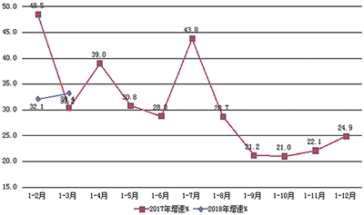 互联网业务收入增速保持两位数。1—3月,我国规模以上(指上年度互联网和相关服务收入300万元以上,按照2016年检结果核定)互联网和相关服务企业(简称互联网企业)完成业务收入1978亿元,同比增长23.8%,增速较去年同期提升2.7个百分点。