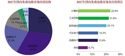 存储器产品的涨价搅动了整个市场格局。过去几年中,快速增长的汽车电子以及工业控制领域的集成电路市场仍保持了快速稳定的增长,而过去几年较为低迷的计算机和网络通信领域,由于存储器使用量较大,也获得了较高的增长速度。