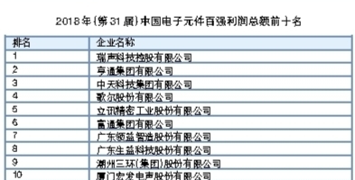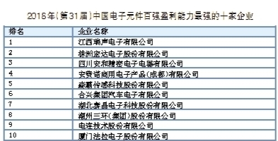 在中国电子元件重点骨干企业的支持与协助下,中国电子元件行业协会信息中心经过历时4个月努力,2018年(第31届)中国电子元件百强企业排序工作圆满完成,100家在规模实力、财务状况、研发能力等方面表现优异的中国电子元件骨干企业入选新一届中国电子元件百强。