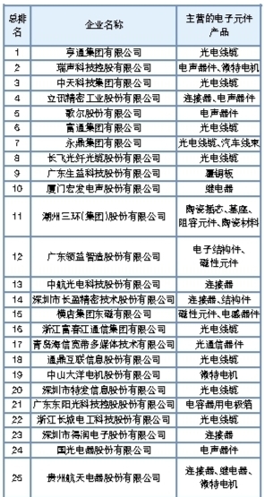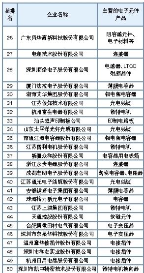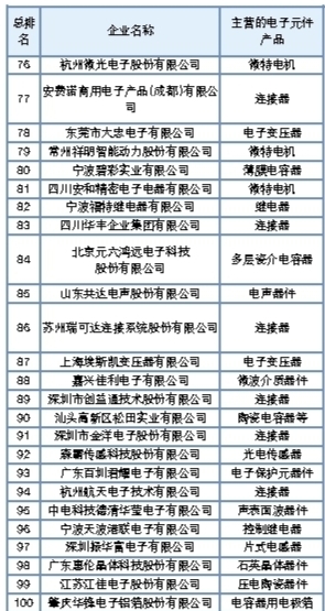 2018年(第31届)中国电子元件百强企业综合排名