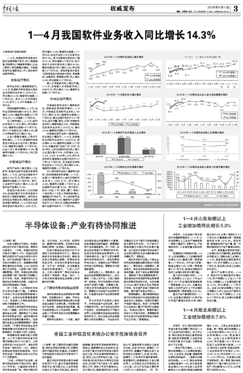 1—4月我国软件业务收入同比增长14.3%