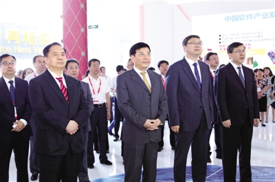 本报讯 记者徐恒报道:6月29日,工业和信息化部、北京市人民政府共同主办的第二十二届中国国际软件博览会开幕式暨全球软件产业发展高峰论坛在北京举行。工业和信息化部部长苗圩,北京市委副书记、市长陈吉宁出席并致辞,开幕式由工业和信息化部副部长陈肇雄主持。