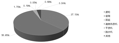 消费升级带动的品质需求和改善型需求成为驱动洗衣机行业结构升级的关键力量,2018年上半年,迷你洗衣机、干衣机成为线上市场的明星产品,零售额和零售量的增速都要显著高于传统洗衣机产品。迷你洗衣机成为零售额和零售量增长最快的洗衣机品类,同比分别增长了85.59%和61.58%。紧随其后的是干衣机,零售额和零售量分别同比增长了78.56%和50.68%。迷你洗衣机、干衣机的异军突起,反映出洗衣机换新需求正从满足基本功能向追求高品质转变,同时也表明,家庭衣物洗护观念的变革将为洗衣机市场发展带来新的契机。从市场规模看,这两类洗衣机的市场占比都还非常低,这也意味着未来成长空间巨大。波轮和滚筒洗衣机仍然是市场的主流,其中波轮洗衣机的零售额市场份额同比进一步下降至37.13%,滚筒洗衣机的零售额占比则在去年同期基础上进一步提升至56.59%。无论是零售额增幅还是零售量增幅,滚筒洗衣机均大幅领先于波轮洗衣机。双缸洗衣机和脱水机的市场份额同比继续减少,零售量和零售额的增幅也远低于行业整体水平。