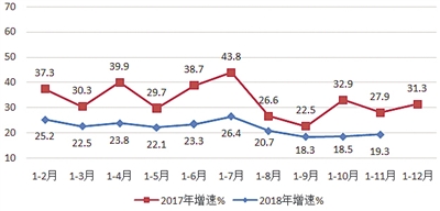 研发投入规模保持较快增长。2018年1—11月,全行业研发投入417亿元,同比增长13.1%。