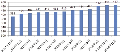 我国市场上移动互联网应用数量小幅增长。截至2018年11月底,我国市场上监测到的移动应用为447万款。11月份,我国第三方应用商店与苹果应用商店中新上架14.3万款移动应用。截至2018年11月底,我国本土第三方应用商店移动应用数量超过266万款,苹果商店(中国区)移动应用数量超过181万款。