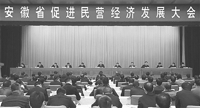 继2013年召开全省民营经济大会、出台“民营经济20条”后,2018年11月26日,安徽省委、省政府又一次召开了高规格、大规模的促进全省民营经济发展万人大会,省四大班子领导参加会议,会议一直开到市县、乡镇、街道,领导重视程度、政策支持力度、社会影响深度前所未有。安徽省委书记李锦斌、省长李国英出席大会并作重要讲话,对推动民营经济大发展大繁荣做出了全面部署安排。会议指出,民营经济地位举足轻重、作用不可替代、贡献居功至伟,全省上下要认真贯彻落实习近平总书记关于“两个毫不动摇”“三个没有变”的重要讲话精神,切实做到“三个坚持”,即坚持讲政治高站位,切实担当起促进民营经济发展的历史责任;坚持大力度有温度,突出抓好各项促进民营经济发展的重点任务;坚持强领导真落实,全面树立“为自己人办事就是办自己的事”的理念,以真心实意对待民营经济,以真金白银支持民营经济,以真抓实干做大做强做优民营经济。