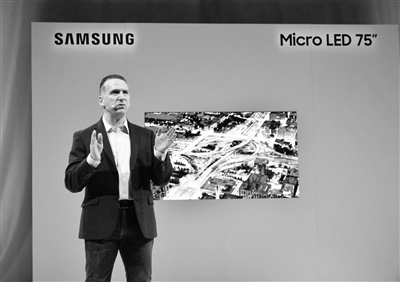 作为新一代显示技术,Micro LED将LED(发光二极管)背光源进行薄膜化、微小化、阵列化,可以让LED单元小于50微米,与OLED一样能够实现每个像素单独定址,单独驱动发光(自发光)。Micro LED比现有的OLED技术亮度更高、发光效率更好、功耗更低。Micro LED受到的关注越来越多,包括三星、LG、索尼等国际巨头都在加紧布局。继去年在CES上推出名为“The Wall”的巨型Micro LED电视后,三星在今年的CES上又展出了全新的、更适合家庭的75英寸Micro LED电视。据三星负责人介绍,采用模块化技术的Micro LED电视凭借革命性的设计,获得了“CES2019最佳创新奖(Best of Innovation award)”。它将屏幕从传统电视的限制中解放出来,通过模块的增加或减少,消费者可以轻松对电视的尺寸进行任意配置,甚至可以重新编排模块位置,形成各种不同的形状。Micro LED技术能支持在任何屏幕比例下对内容进行优化,从16∶9的常规比例,到21∶9的宽屏比例,甚至是32∶9或1∶1的非常规比例。