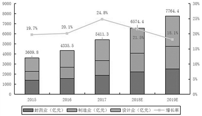 预计2019年全球半导体市场增长速度将大幅下降,而在复杂的国际贸易环境和增速放缓的全球市场影响下,2019年国内市场增长率也将同比下降。