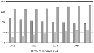 2018年,在电视面板大尺寸和新产品、新需求的带动作用下,全球新型显示产业保持增长态势,显示面板出货面积将达到2.2亿平方米。另外,受TFT-LCD面板价格不断下降的影响,显示产业总体营收将出现缩减,缩减规模在4%左右。近年来,我国新型显示产业进步明显,尤其是在TFT-LCD领域,已取得突破性进展,产能产量位居全球第一,综合竞争力不断攀升。