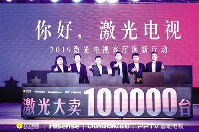 2月21日,海信、长虹、PPTV携手苏宁易购,在南京启动“2019激光电视客厅焕新行动”,面向全国开展以旧换新活动,制定了全年销售10万台激光电视的目标。在行业高速发展的关键节点,以海信为首的三家厂商将手紧紧握在一起,2019年激光电视的普及之役也就此拉开序幕。
