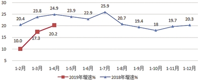 互联网业务收入增速继续回升。1—4月,我国规模以上(指上年度互联网和相关服务收入500万元以上的企业,本月开始,完成年报工作的省份按照2018年年报结果核定,分省数据可能出现波动。)互联网和相关服务企业(简称互联网企业)完成业务收入3246亿元,同比增长20.2%,增速较第一季度提高2.9个百分点,与去年同期增速的差距收窄到4.7个百分点。