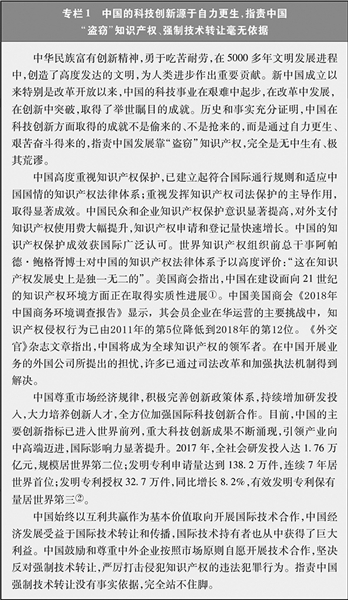 (注1)2018年2月,美国商会全球创新政策中心发布的《2018年国际知识产权指数报告》称,2018年,中国以19.08分位居50个经济体的第25位,较2017年上升2位,http://www.theglobalipcenter.com/wp-content/uploads/2018/02/GIPC_IP_Index_2018.pdf。