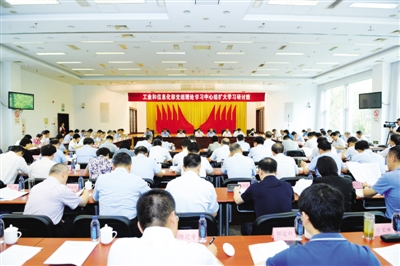 本报讯 6月27日—29日,工业和信息化部党组在京举办理论学习中心组扩大学习研讨班,围绕深入学习贯彻习近平新时代中国特色社会主义思想和党的十九大精神,紧密结合“不忘初心、牢记使命”主题教育,聚焦制造强国和网络强国建设,扎实开展集中学习研讨。中央“不忘初心、牢记使命”主题教育第22指导组副组长刘越同志和沈群英同志到会指导。