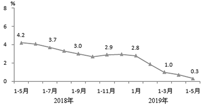 电信业务收入增速继续放缓。1—5月,电信业务收入累计完成5590亿元,同比增长0.3%,增速同比回落3.9个百分点,较1—4月回落0.4个百分点。