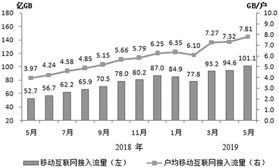 当月户均移动互联网接入流量(DOU)明显提升。1—5月,移动互联网累计流量达452亿GB,同比增长114.6%;其中通过手机上网的流量达到450亿GB,同比增长117.8%,占移动互联网总流量的99.6%。5月当月户均移动互联网接入流量(DOU)达到7.81GB,同比增长96.8%。