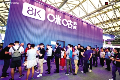 6月26日,国内首个8K影院震撼亮相MWC19上海全球5G沉浸式体验馆。中国移动咪咕开创性的将8K超高清技术应用到影视领域,打造了科技感十足的8K咪咕影院。