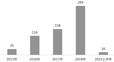 二是区块链在电子政务领域应用持续走高。2019年公布的区块链+电子政务应用项目为13项,超过了2018年全年区块链电子政务应用数12项。各级政府积极出台政策鼓励区块链发展,上半年政策数量与2018年数量持平。
