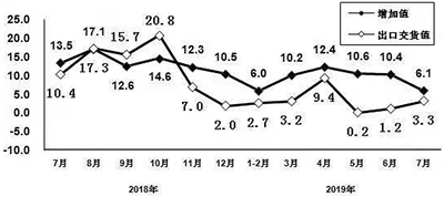 7月,规模以上电子信息制造业增加值同比增长6.1%,增速比去年同期回落7.4个百分点。1—7月份增加值同比增长9.1%,增速比去年同期回落3.5个百分点。