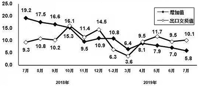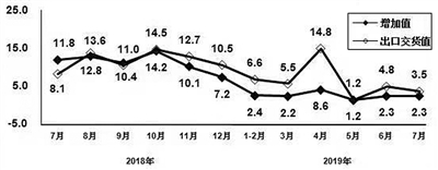 7月,规模以上电子信息制造业出口交货值同比增长3.3%,增速同比回落7.1个百分点。1—7月份,实现出口交货值同比增长4.2%,增速同比回落2.3个百分点。