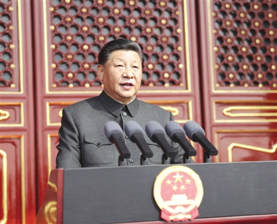 习近平在讲话中指出,70年前的今天,毛泽东同志在这里向世界庄严宣告了中华人民共和国的成立,中国人民从此站起来了。这一伟大事件,彻底改变了近代以后100多年中国积贫积弱、受人欺凌的悲惨命运,中华民族走上了实现伟大复兴的壮阔道路。70年来,全国各族人民同心同德、艰苦奋斗,取得了令世界刮目相看的伟大成就。今天,社会主义中国巍然屹立在世界东方,没有任何力量能够撼动我们伟大祖国的地位,没有任何力量能够阻挡中国人民和中华民族的前进步伐。