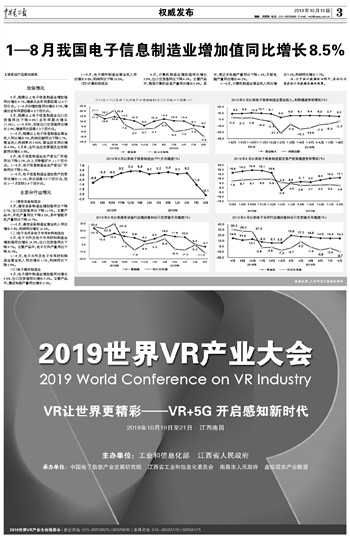1—8月我国电子信息制造业增加值同比增长8.5%