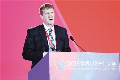 10月19日,2019世界VR产业大会在南昌召开。思爱普(SAP SE)全球副总裁约翰·吉布森出席大会主论坛并发表演讲。