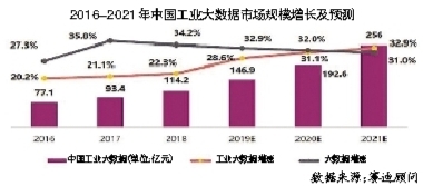 大数据能够让工业企业变成“巧妇”。工业大数据在企业的故障诊断、过程可视、流程优化等方面有巨大应用空间。赛迪顾问数据显示,2018年中国工业大数据规模为114.2亿元,预计到2021年中国工业大数据市场规模将增长至256亿元。