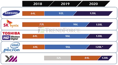 在应用端,用户减小了对笔记本电脑换新机的需求,未来在笔记本电脑端的存储器空间或呈现负数增长。另一方面,存储器市场出现两个应用增长点:一是服务器。据集邦咨询数据,2020年服务器增长3.8%,主要带动作用来自人工智能、物联网和大数据技术,应用逐渐向云端迁移,进一步催生服务器对存储芯片的需求。二是5G应用。2020年5G网络商用即将快速推进,5G网络智能手机将逐渐成为市场主流。2019年6月6日,工业和信息化部发布了5G网络商用牌照,经过2019年半年的部署,5G网络商用将在2020年迈出重要一步。与此同时,5G网络的大带宽、低时延、广链接的特性对存储提出了更大容量、更加稳定、更快响应的新要求。作为全球最大的智能手机市场,中国将成为智能手机存储器的龙头市场,为存储器企业提供发展机遇。