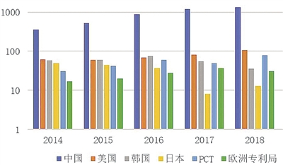 从新增专利看,全球自动驾驶感知技术正处于快速发展期。2009年,谷歌正式启动商业自动驾驶汽车项目,自动驾驶开始进入公众视线并渐成热点。以谷歌、优步、百度等为代表的互联网科技企业,和以宝马、奔驰等为代表的传统汽车厂商纷纷加入自动驾驶的研发竞赛。此后,全球自动驾驶感知领域的相关专利申请大幅增长,并进入快速发展期。2018年,全球自动驾驶感知领域的新增专利数量为1671项,是2010年的6.5倍。其中,PCT新增专利数量为79项,是2010年的6.1倍。中、日、美、韩依次位列专利数的前四名,四国合计约占专利总数的84%。