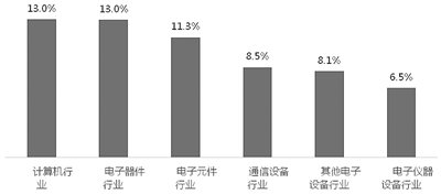 产业切换期、原材料涨价和全球经济的不确定性,成为企业效益下滑的重要因素。2018年,电子信息制造业主营业务利润率4.75%,较上年下降0.76个百分点,行业亏损面从上年的16.07%扩大到19.77%,反映在指标得分上,均较上年有一定幅度下降。企业反映,导致效益下降的主要因素:一是部分细分行业进入行业技术切换节点,新兴动能难以接续传统领域动能问题突出,传统消费电子市场饱和,价格下降明显,而新产品需求成长缓慢、投入巨大,尚未形成有效支撑。二是行业增速放缓与原材料涨价、技术升级带来的研发成本上升等因素形成叠加效应。电子信息制造业是原材料成本占主营业务成本比例较高的行业,整机企业这一比例甚至超过70%,2018年下半年以来的电子元件及电子专用材料出厂价格快速增长,极大拉升了下游企业成本。集成电路工艺研发的成本平均每个技术节点是上一节点的1.5倍,研发成本的快速增加也对企业效益短期影响显著。三是全球经济和贸易增长速度下滑,对占一半国际市场的电子信息制造业影响巨大,同时,贸易不确定性、汇率大幅波动等易影响企业正常生产秩序,出现订单短期化、抢生产、增大备品备件现象,企业成本压力加大。