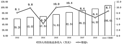 盈利能力稳步提升。2019年软件和信息技术服务业实现利润总额9362亿元,同比增长9.9%;人均实现业务收入106.6万元,同比增长8.7%。