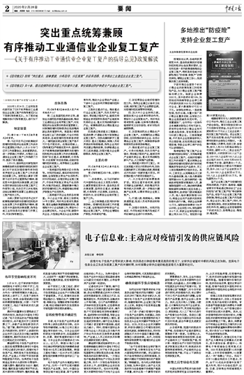 突出重点统筹兼顾 有序推动工业通信业企业复工复产