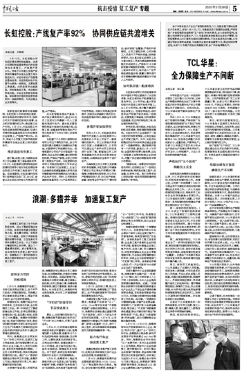 长虹控股:产线复产率92% 协同供应链共渡难关