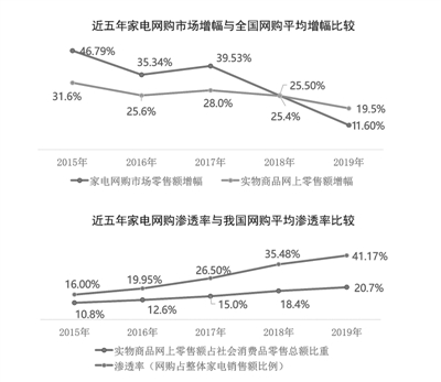 线上渗透超过40%。2019年,线下渠道家电产品零售额为5242亿元,同比下降9.6%;线上家电产品零售额为3668亿元,同比增长11.6%,线上占整体家电市场零售额规模的比重进一步扩大,达41.17%。