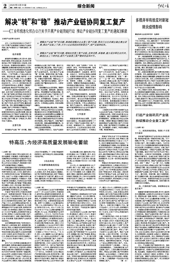 解决“转”和“稳” 推动产业链协同复工复产