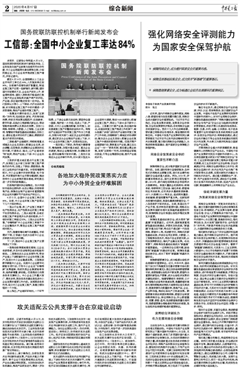 工信部:全国中小企业复工率达84%
