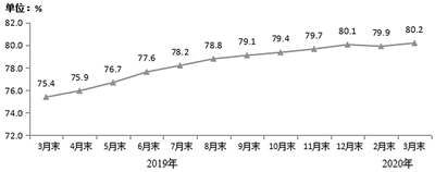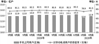 移动电话用户规模稳定,4G用户占比小幅提升。截至3月末,三家基础电信企业的移动电话用户总数达15.9亿户,随着经济社会运行秩序有序恢复,3月当月新增用户962万户。4G用户(12.8亿户)在移动电话用户总数中占比达80.2%,占比较2月末提高0.3个百分点。