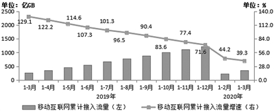 移动电话通话量持续下降。第一季度,移动电话去话通话时长完成4861亿分钟,同比下降16.9%,降幅较上年末扩大11个百分点,但比1—2月收窄1.7个百分点;固定电话主叫通话时长完成218亿分钟,同比下降27.4%,降幅较上年末扩大8.8个百分点,比1—2月收窄3个百分点。