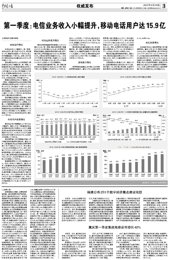 第一季度:电信业务收入小幅提升,移动电话用户达15.9亿