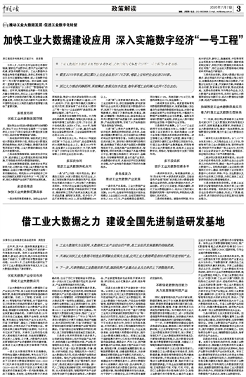 加快工业大数据建设应用 深入实施数字经济“一号工程”