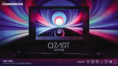 杨治国向记者表示,自今年4月长虹8K电视批量上市以来,线上市场的D8K大魔王产品,线下市场的Q7ART 8K产品,当下已独占8K市场鳌头。根据奥维云网数据,长虹8K电视的线上零售量在整个8K电视领域占比高达90%以上,每销售10台8K电视,就有9台是长虹。长虹8K电视未来可期。