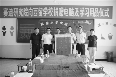 牟宗庆一行带着赛迪人满满的爱心,为浑源县西留学校捐赠电脑、图书和学习用品,为孩子们送去赛迪的关爱。