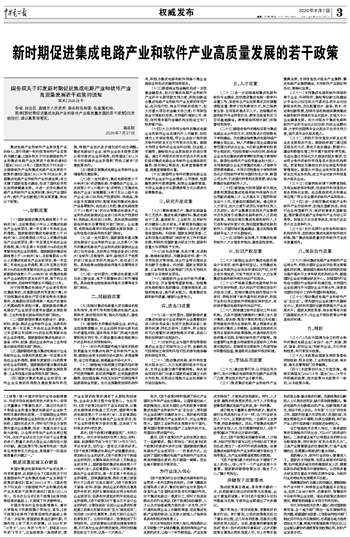 新时期促进集成电路产业和软件产业高质量发展的若干政策